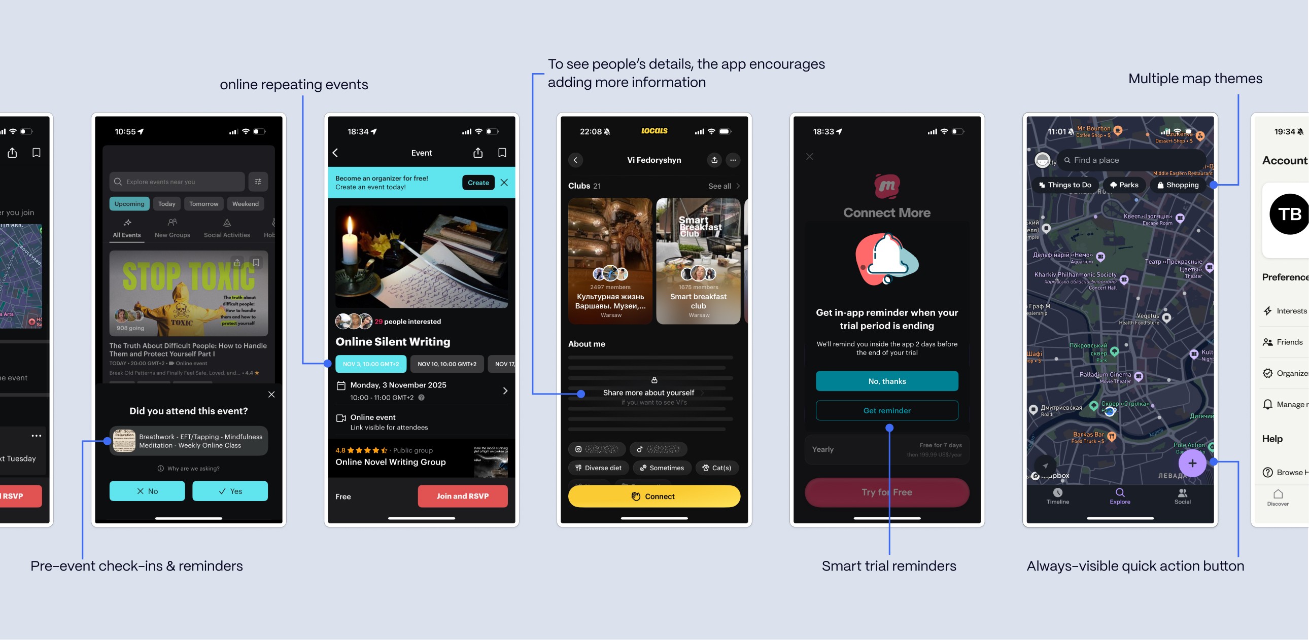 I walked through the full user journey inside 5 competing apps, signed up for real events as an actual participant, and dissected their UX from the inside.