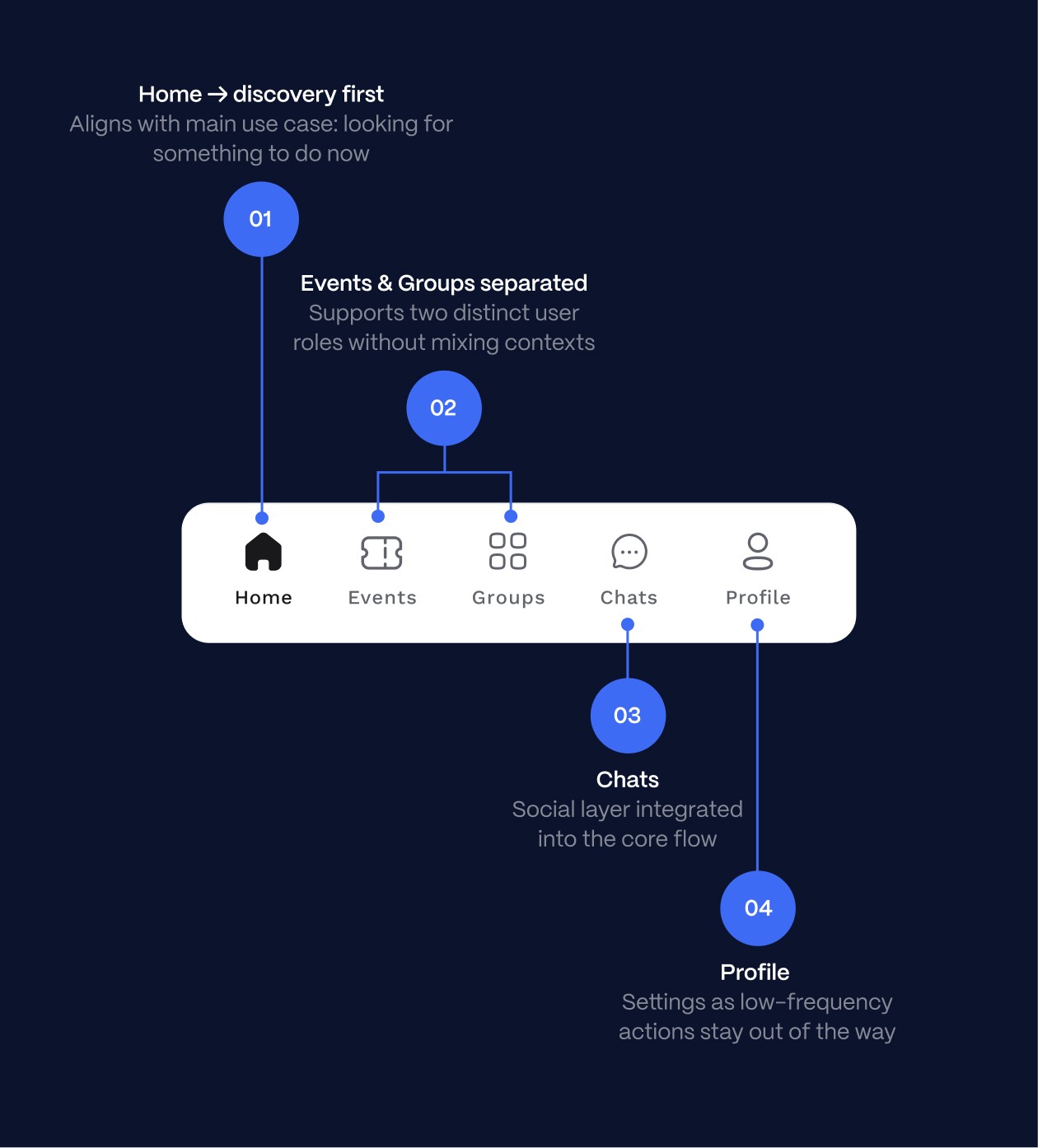 Structure the core user flows and define a product logic that truly matches the needs of two very different audiences — event participants and event organizers.